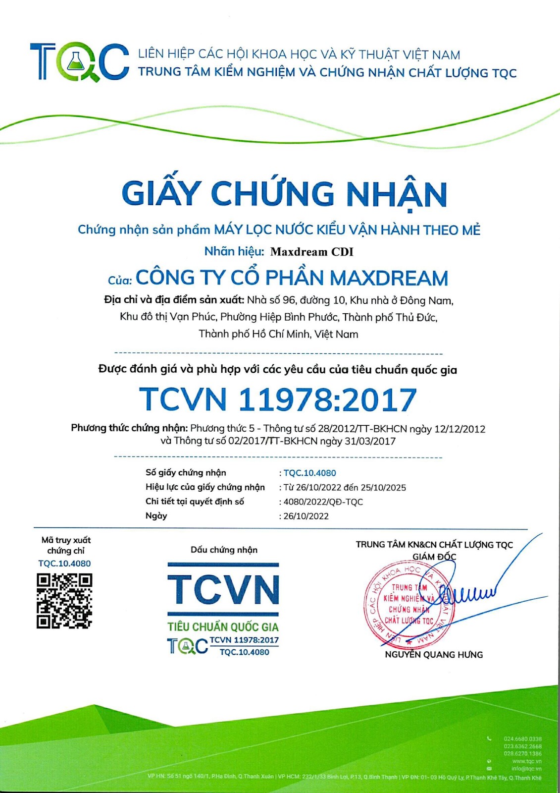 Maxdream được dẫn đầu là TS. Đỗ Hữu Quyết cũng là cha đẻ của công nghệ CDI ở Việt Nam với hơn 5 năm nghiên cứu khoa học công nghệ gốc tại Mỹ và hơn 8 năm đồng hành nghiên cứu và phát triển ứng dụng hoàn thiện công nghệ CDI trên nguồn nước Việt Nam. Chính vì thế các sản phẩm của Maxdream đều được nghiên cứu trên thực trạng ô nhiễm, môi trường Việt Nam và đạt được những kết quả xử lý vượt trội. Điều đó được thể hiện qua chứng nhận Máy lọc nước quốc gia và các bản Test thực tế 26 chỉ tiêu nước uống trực tiếp mà Maxdream đã đạt được.